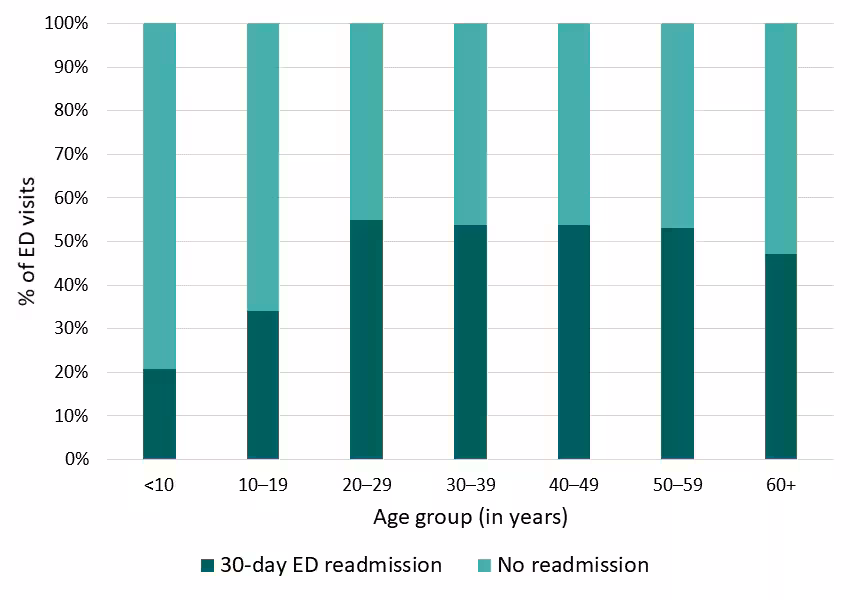 30-day ED readmissions: hospital or ED readmission within 30 days of discharge from the initial ED visit