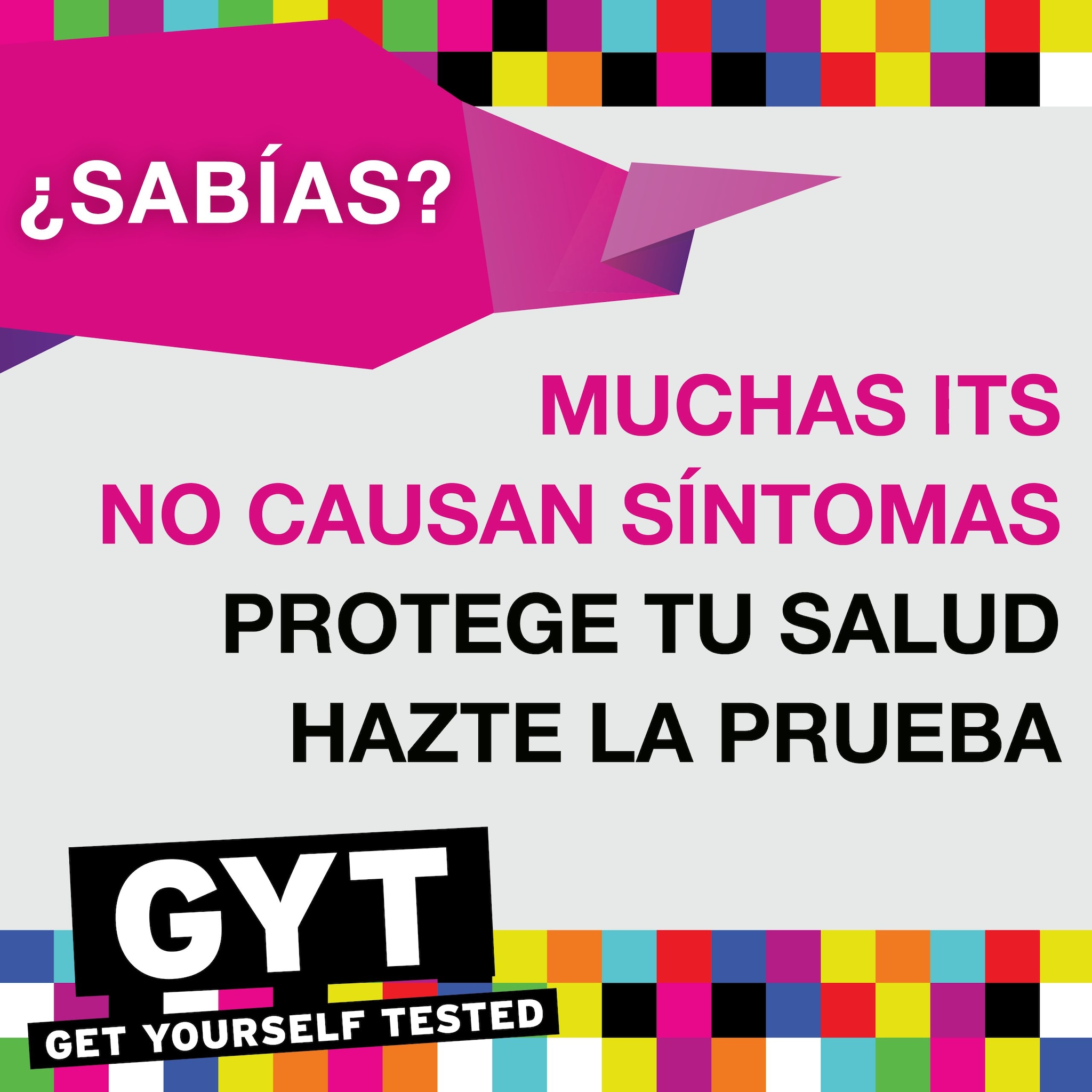 ¿Sabías? Muchas #ITS no causan síntomas. Protege tu #salud. Hazte la prueba. https://bit.ly/3YHvddJ #GYT #STIweek