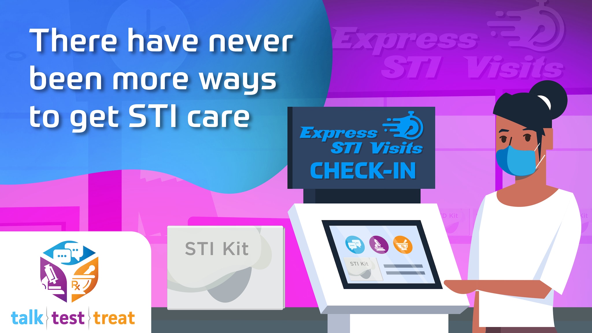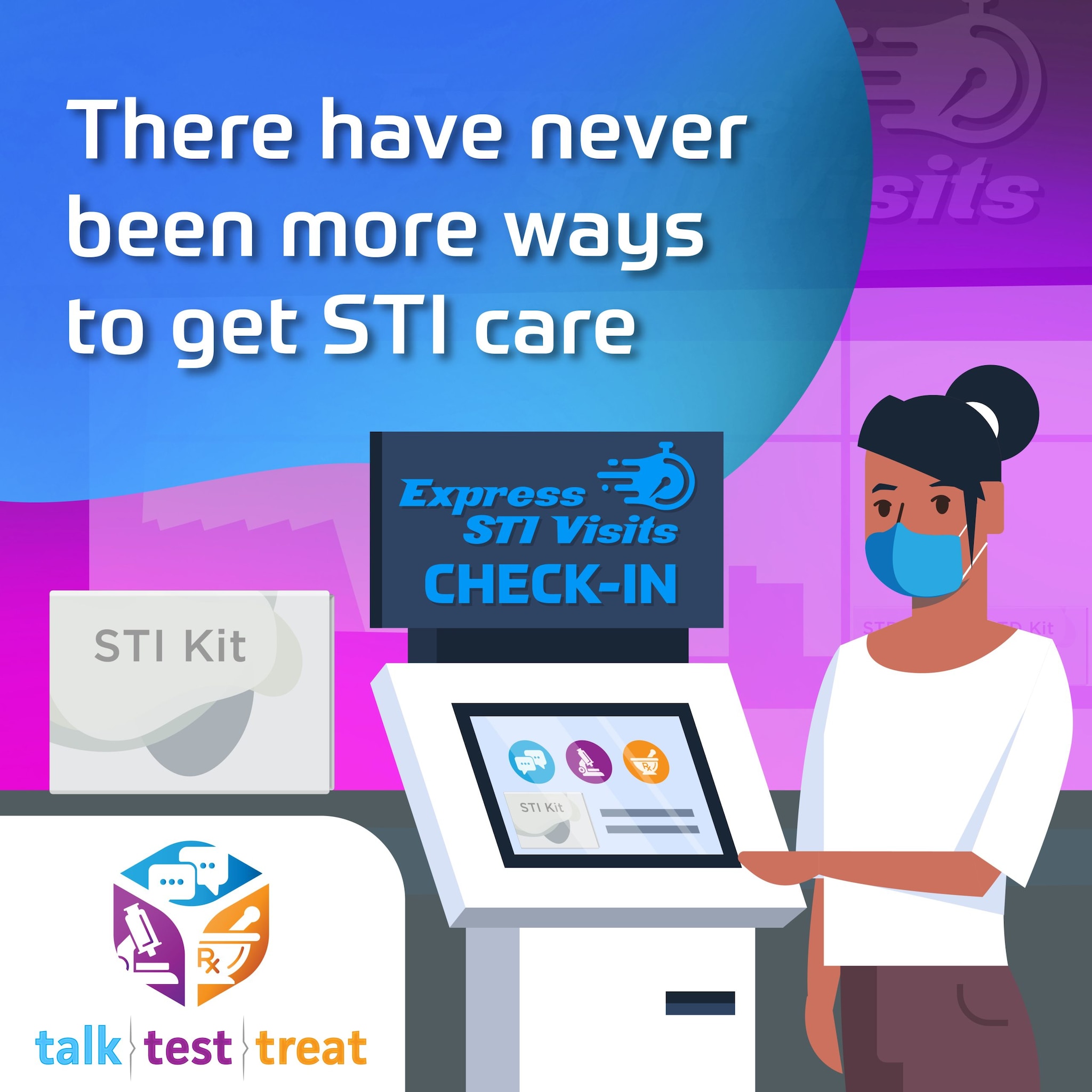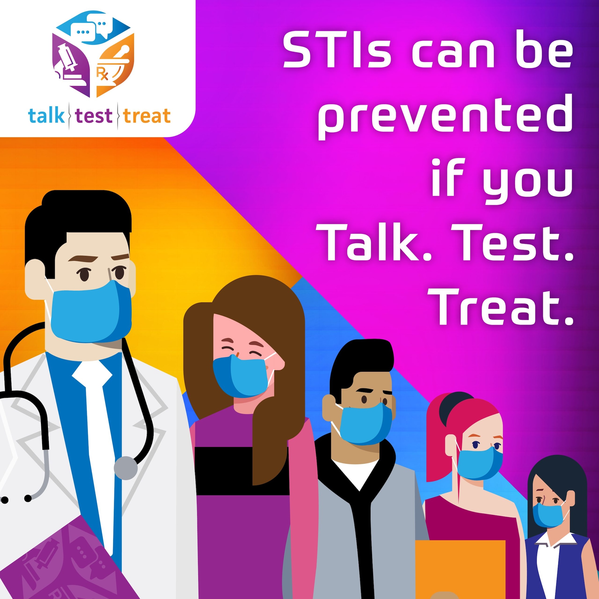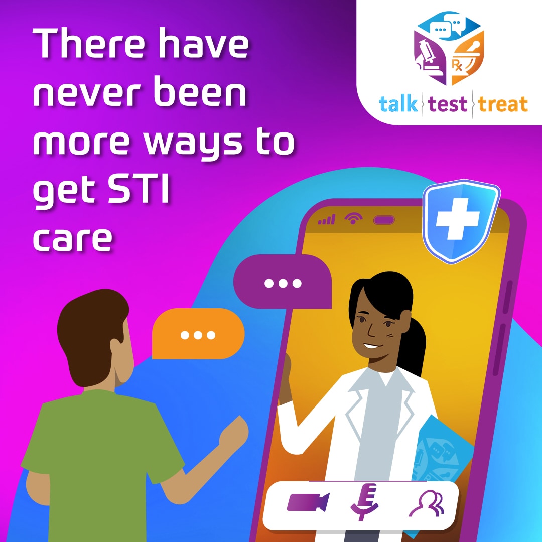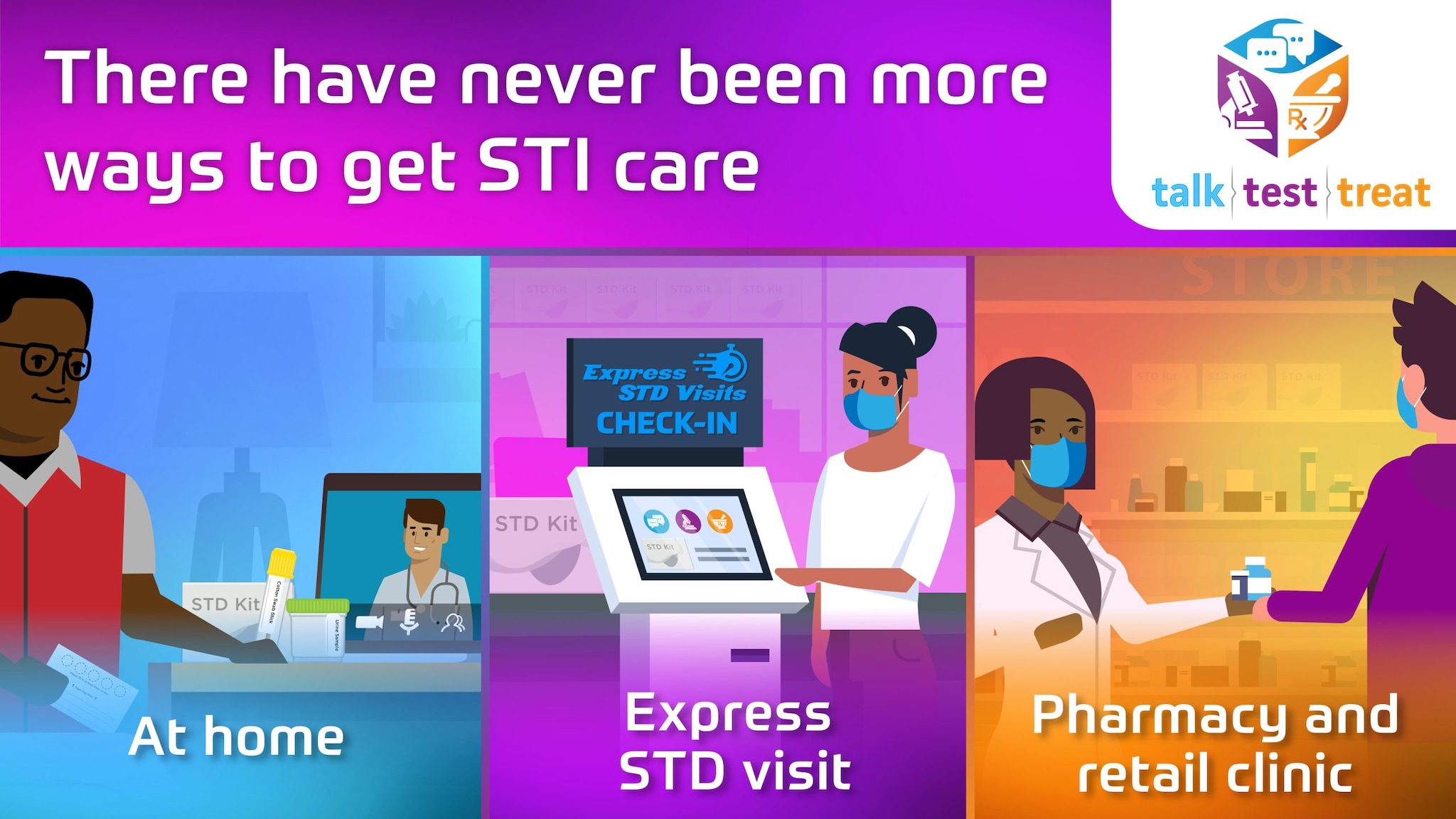 These messages can be customized with specific STI care information that your organization is offering. Some services to promote include video or phone appointments, express visits, pharmacies or retail health clinics for STI testing and treatment, and at-home collection kits for testing and treatment. Accompanying graphics are available for Talk. Test. Treat. to supplement these messages.