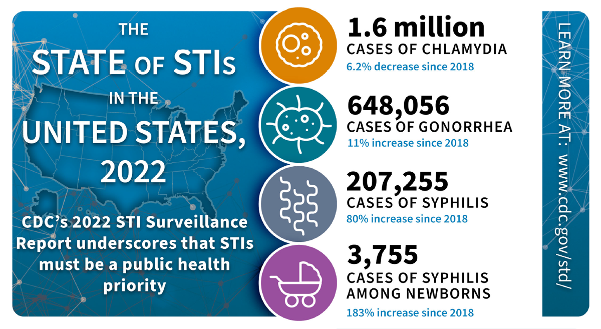 2022 surveillance data underscores that STIs must be a public health priority. More than 2.5 million STI cases were reported in the U.S., with syphilis emerging as a unique public health challenge. https://bit.ly/3RWAYlx #STIreport #STIweek
