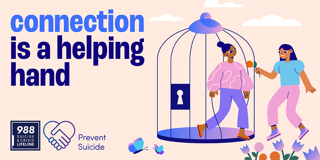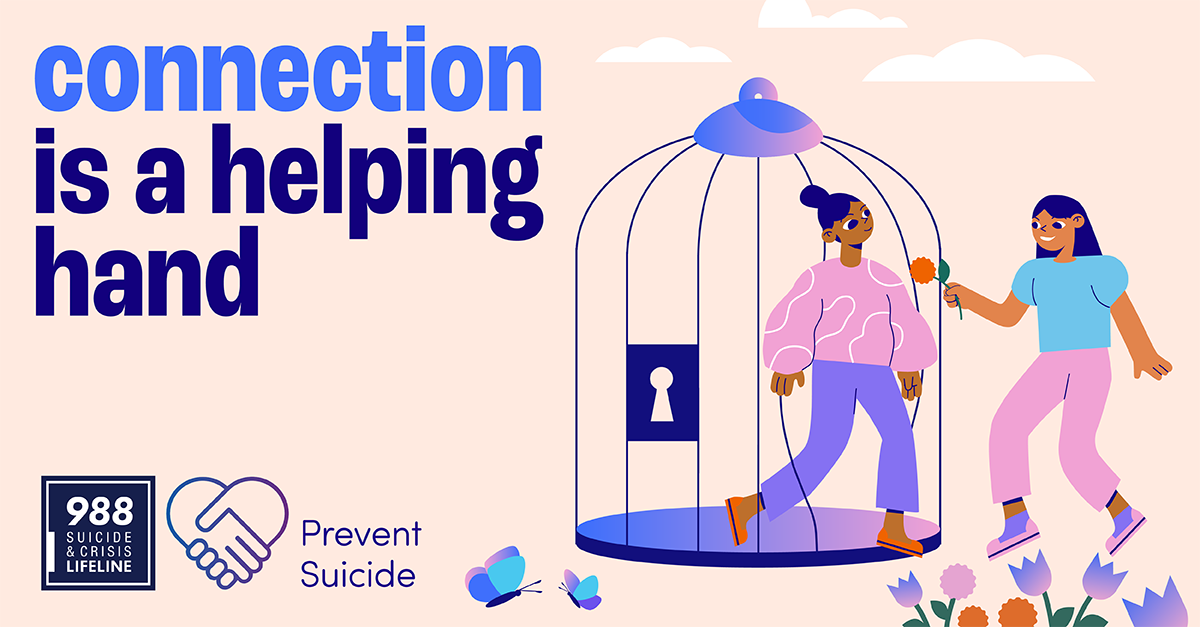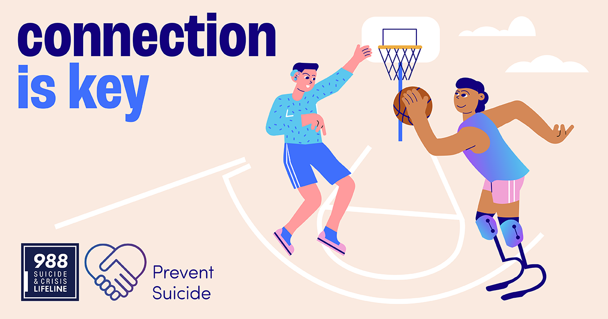 CDC's Injury Center's social media resources include sample social media graphics and messages centered around the key role personal connections play in preventing suicide. The resources also highlight messages about the importance of connecting with others, learning how to cope with stress in order to increase resilience, and promoting the new 988 Suicide and Crisis Lifeline.