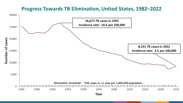 In 2022, reported TB cases and incidence rates (number of TB cases per 100,000 persons) in the United States increased for the second year in a row, but remained lower than levels reported prior to the COVID-19 pandemic.