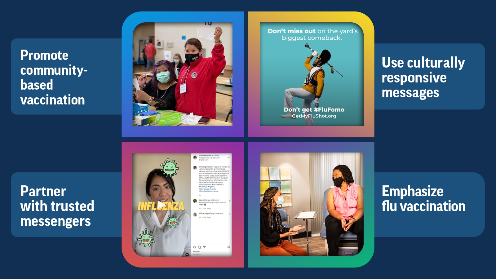 Using proven measures may help increase flu vaccination among people from racial and ethnic minority communities.